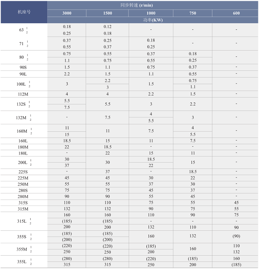 電動(dòng)機(jī)機(jī)座號(hào)與功率及轉(zhuǎn)速對(duì)應(yīng)關(guān)系: