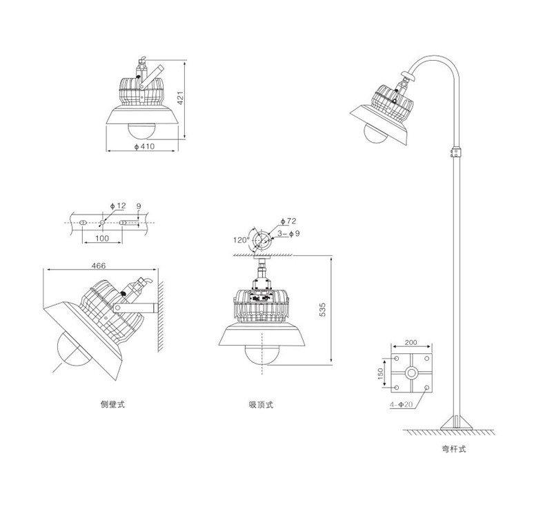 1)壁掛式安裝:先將燈體通過(guò)支架安裝在墻壁或其它支撐件上(保證遮光板在燈泡正上方),然后將電纜依次穿過(guò)接頭、墊片、密封圈直至接線盒內(nèi)(預(yù)留出一定長(zhǎng)度的電纜方便接線),較后旋緊接頭,擰緊緊定螺釘;