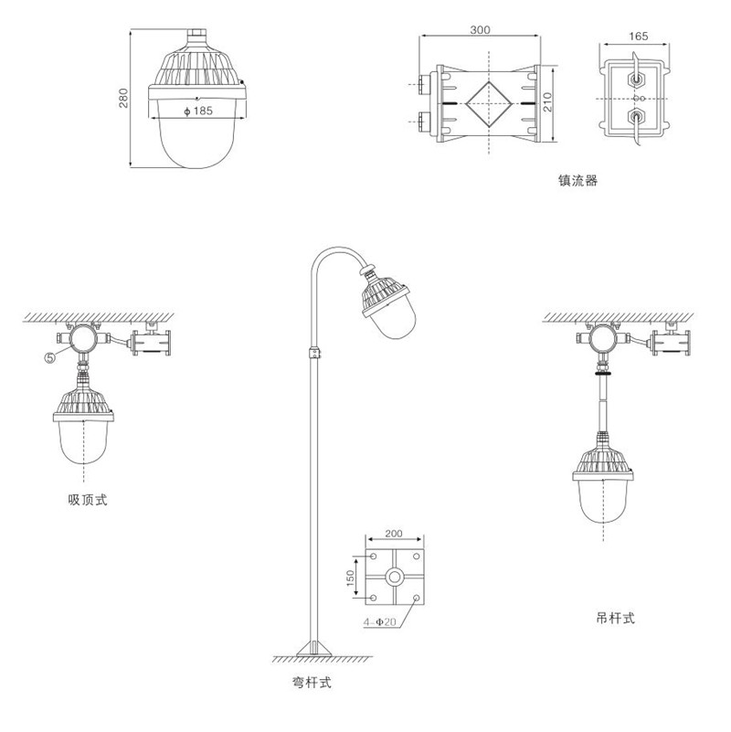 ●體積小、重量輕,可采用吸頂式、吊桿式、燈桿式等多種安裝方式,操作簡單方便.