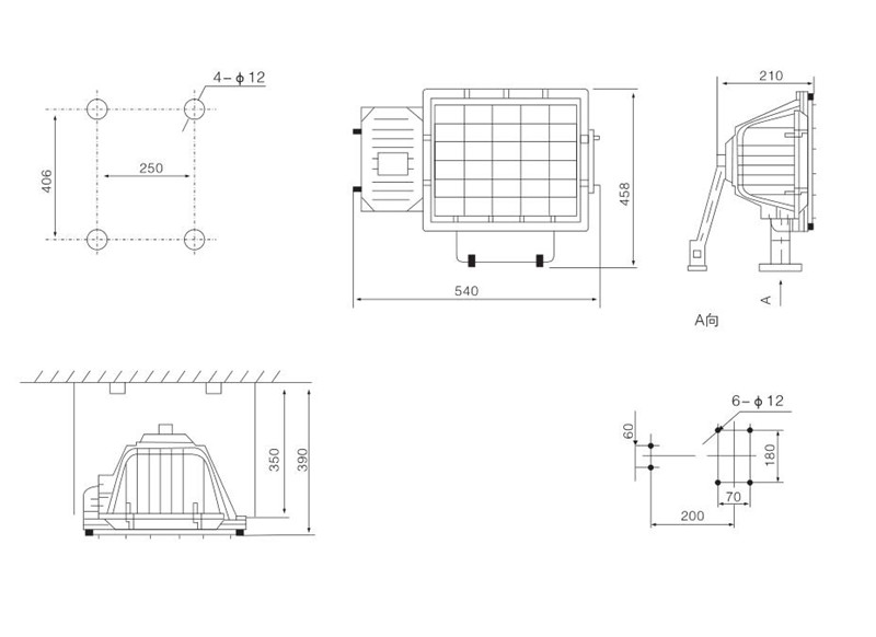 ●可選用座式、壁掛、吊掛、吸頂?shù)榷喾N安裝方式;燈頭以燈座支架端部為軸心,可180度旋轉(zhuǎn)照明,滿足不同工作現(xiàn)場對照明角度的需要,通用管螺紋電纜引入口,可適應(yīng)φ8~φ12mm不同線徑電纜引入.