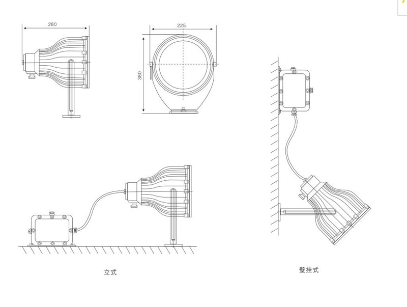 外形尺寸:φ225x280mm(燈具)