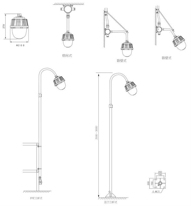 燈具常規(guī)出廠配置為吊桿式,如需保護網罩或其他安裝方式請在訂貨時注明.